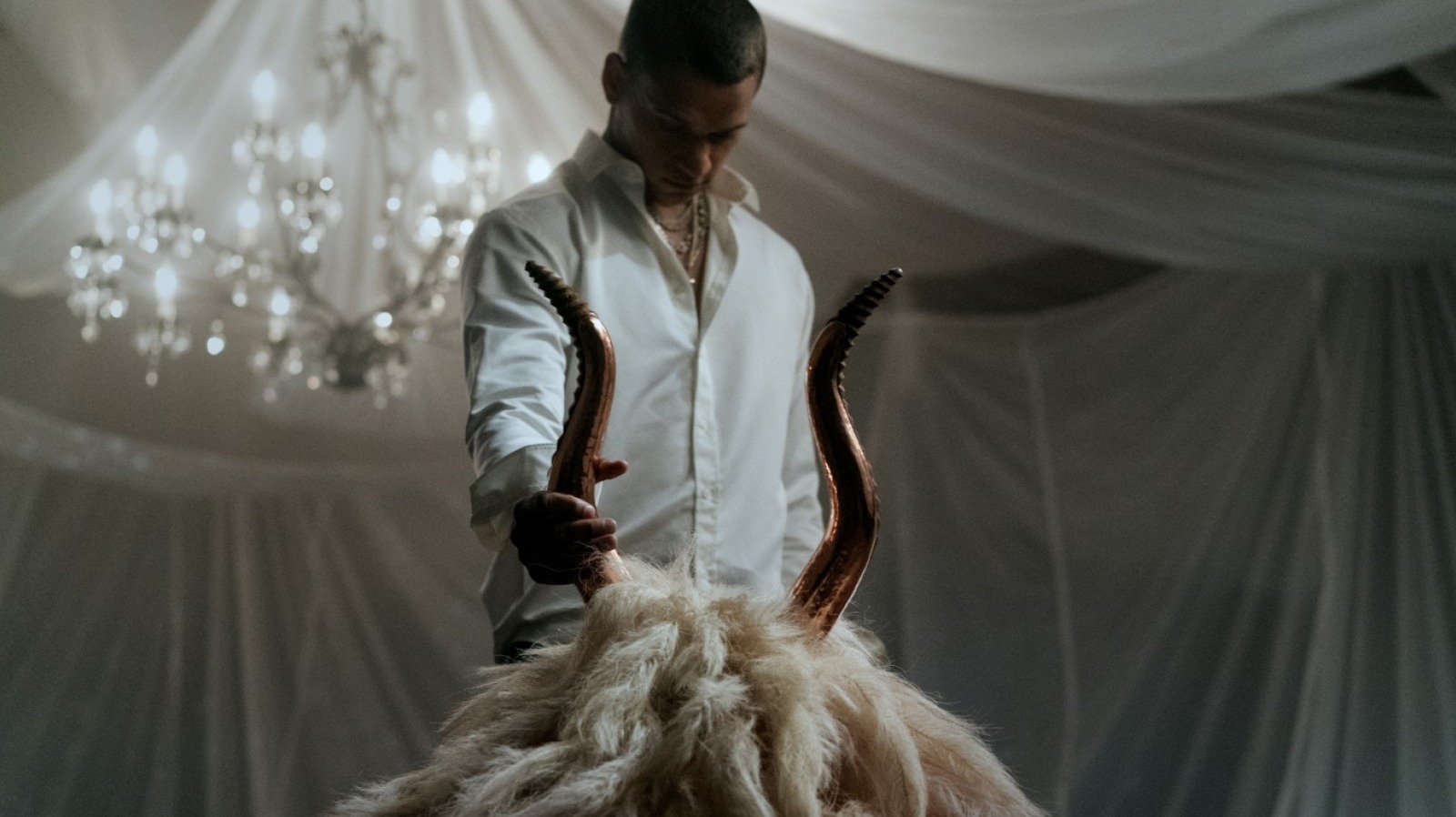 The original script for "him", then titled "Goat", ended only with characters that would later become Isaiah and Kam talk, and Isaiah revealed a ritual of a contract that made him impermeable to an injury that allowed him to be a goat. Kam, though reluctantly at the beginning, eventually agrees and makes the ritual himself, becoming a starfish defender, while Isaiah will finally live a life surrounded by friends, family and unwanted food, he stopped eating years before.